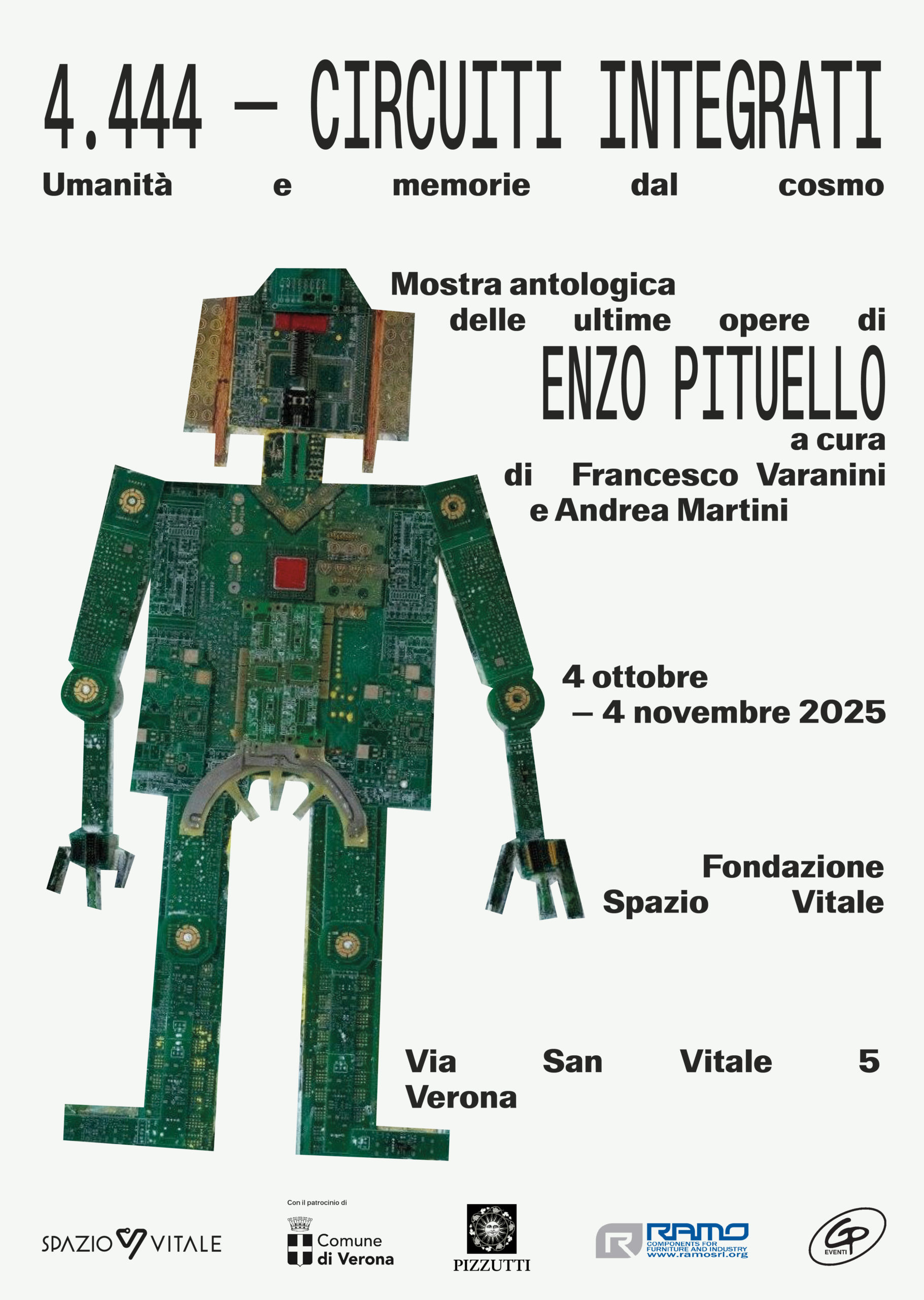 Le opere dell’artista Enzo Pituello, scomparso all’inizio del 2023, ed in particolare le ultime opere, offrono molteplici spunti di riflessione, tutti connessi con lo scopo della Fondazione Spazio Vitale. Viviamo immersi in una ‘cultura digitale’ che, nel mentre offre strumenti certamente utili, rischia di alterare la nostra percezione della realtà, di inaridire le relazioni sociali e di farci accettare passivamente ‘intelligenze artificiali’.